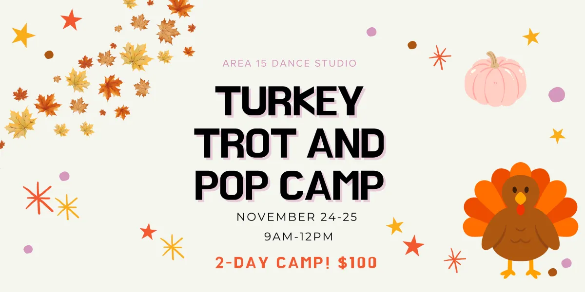 Our Turkey Trot & Pop Camp is two mornings of upbeat fun featuring hip-hop and jazz-funk classes, Thanksgiving games like “Freeze the Feast,” and a mini combo to your favorite fall pop hits.